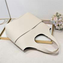 セリーヌネイビーベースとのコントラストで爽やかな印象を強調する。襟ぐりは丸みを帯びたラウンド形状を採用し、首元に柔らかなラインを作り出す。袖口は少しカットされた七分丈に設定され、手首のラインを明確に見せることで、春夏らしい軽快感を演出する。これらの白は青みがかった清潔感のあるトーンを持ち、ネイビーとの組み合わせでフランスの国旗を仿佛とさせる、ブランドの原風景を想起させる配色だ。胸元の立体的なロゴ刺繍は、高級感を決定づける要素だ。「CELINE」の文字は細かなステッチを重ねて立体的に表現され、糸には微妙な光沢を持つ素材を使用することで、光に当てると柔らかく輝く。刺繍の位置は左胸の中心に配置され、大きさは控えめに抑えられていながらも、立体的な質感がしっかりと存在感を主張する。特に、文字の周囲には細かな飾り糸が巻かれており、「凱旋門」シリーズ特有の優雅さを表現している。